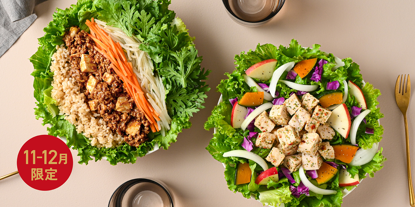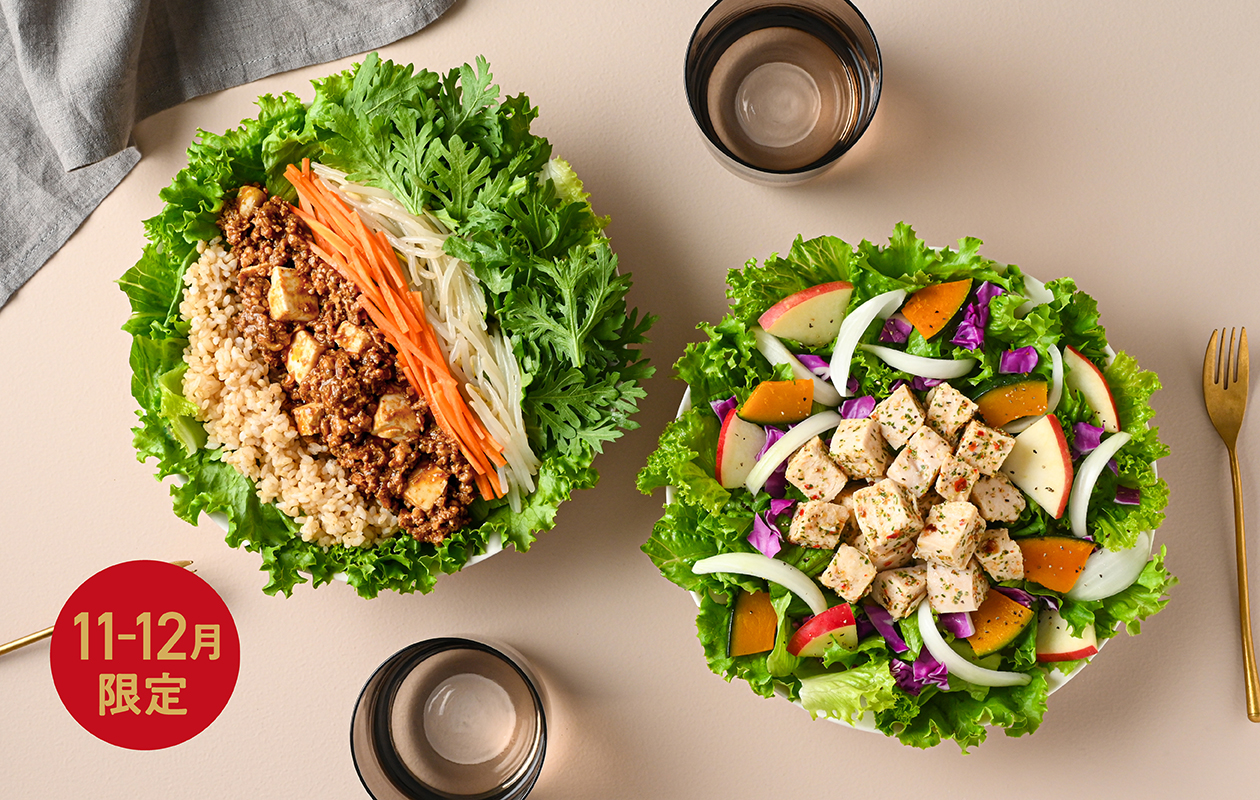 四川風麻婆豆腐と、もやしナムルや玄米の食感がマッチ。香り豊かな春菊がほどよいアクセントとなり、最後まで 飽きずに楽しめる、満足感たっぷりの一皿です。