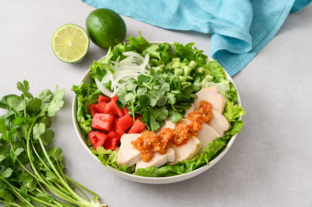 梅雨のジメジメも吹き飛ばす「アジア」の刺激をパワーチャージ!『たっぷりパクチーとよだれ鶏のエスニック風サラダ』