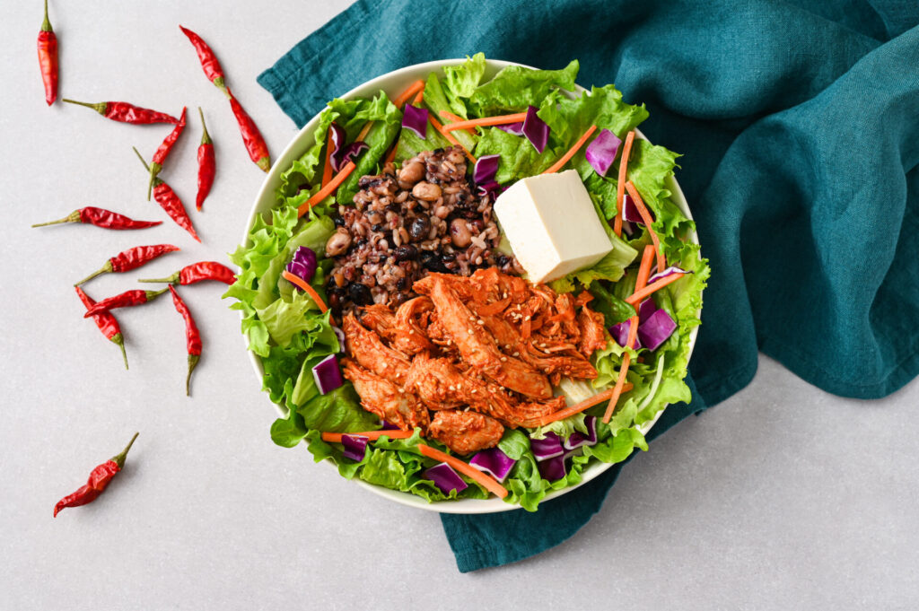 梅雨のジメジメも吹き飛ばす「アジア」の刺激をパワーチャージ!『ヤンニョムチキンと十五穀米の韓国風サラダ』